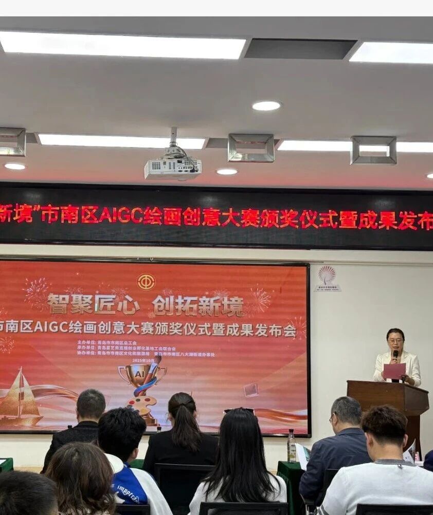 近日,市南区“智聚匠心 创拓新境”AIGC绘画创意大赛颁奖仪式暨成果发布会举行,作为市南区总工会搭建的全新技能竞赛平台,大赛历时四个月时间,不仅展现了职工在人工智能绘画领域的才华与创意,更探索出一条从作品到商品的赋能创效新路径,展现出工会“以赛促学、以学促创、以创促产”的服务新模式,为提升产业工人技能,推动产业融合发展注入新动能。