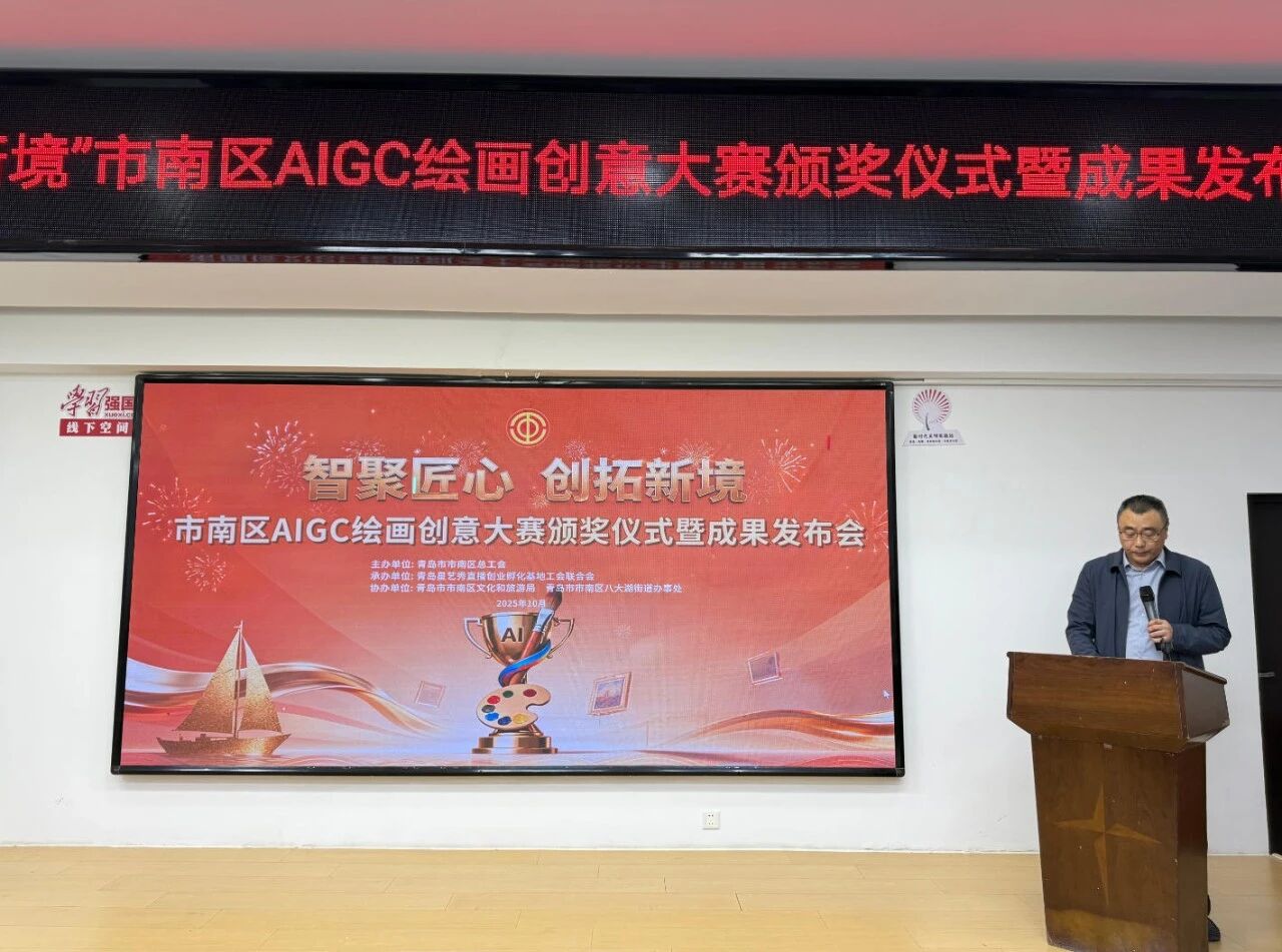 近日,市南区“智聚匠心 创拓新境”AIGC绘画创意大赛颁奖仪式暨成果发布会举行,作为市南区总工会搭建的全新技能竞赛平台,大赛历时四个月时间,不仅展现了职工在人工智能绘画领域的才华与创意,更探索出一条从作品到商品的赋能创效新路径,展现出工会“以赛促学、以学促创、以创促产”的服务新模式,为提升产业工人技能,推动产业融合发展注入新动能。